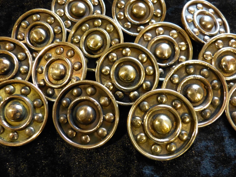 Elles mesurent 5cm de diamètre et sont équipées d’un rivet central avec renflements pouvant servir de bouton.