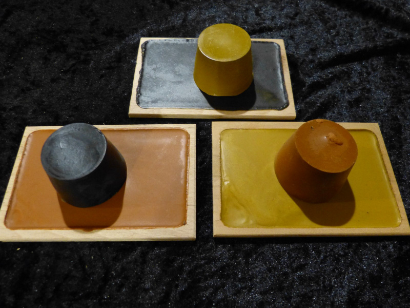 Ces blocs de cire sont constitués de cire d’abeilles et de pigment minéral (ocre jaune, ocre rouge…).