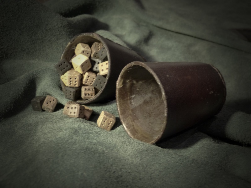 - Des jeux de dés : 6 ensembles de 6 dés sculptés dans 6 essences de bois différentes sont disponibles dans ce jeu. Accompagnés de leurs 6 gobelets en cuir bouilli étanche, vous aurez tout le loisir de jouer aux jeux de votre choix, avec ou sans boisson…