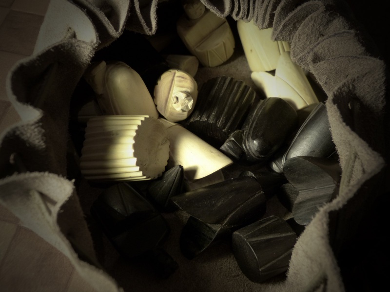- Un jeu de dame : Il se joue sur le même plateau que les échecs (autrefois les dames se jouaient sur un plateau de 64 cases). Les pions blancs sont en corne blanche, les pions noirs en corne noire.