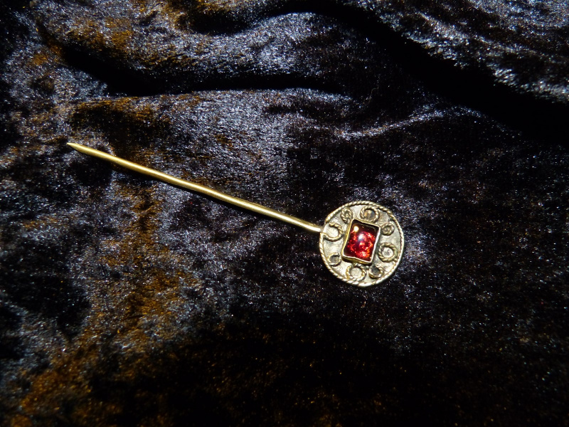 Le contexte du XIIIé siècle de la tombe et la singularité de l’objet au sein des épingles altomédiévales rendent cependant délicate la précision des date et lieu de création. Cependant, les techniques d'orfèvrerie employées et l’origine des matériaux sont en harmonie avec une origine occidentale du Vle siècle. Ce qui signifierait que l’objet a été collectionné sur une langue période.